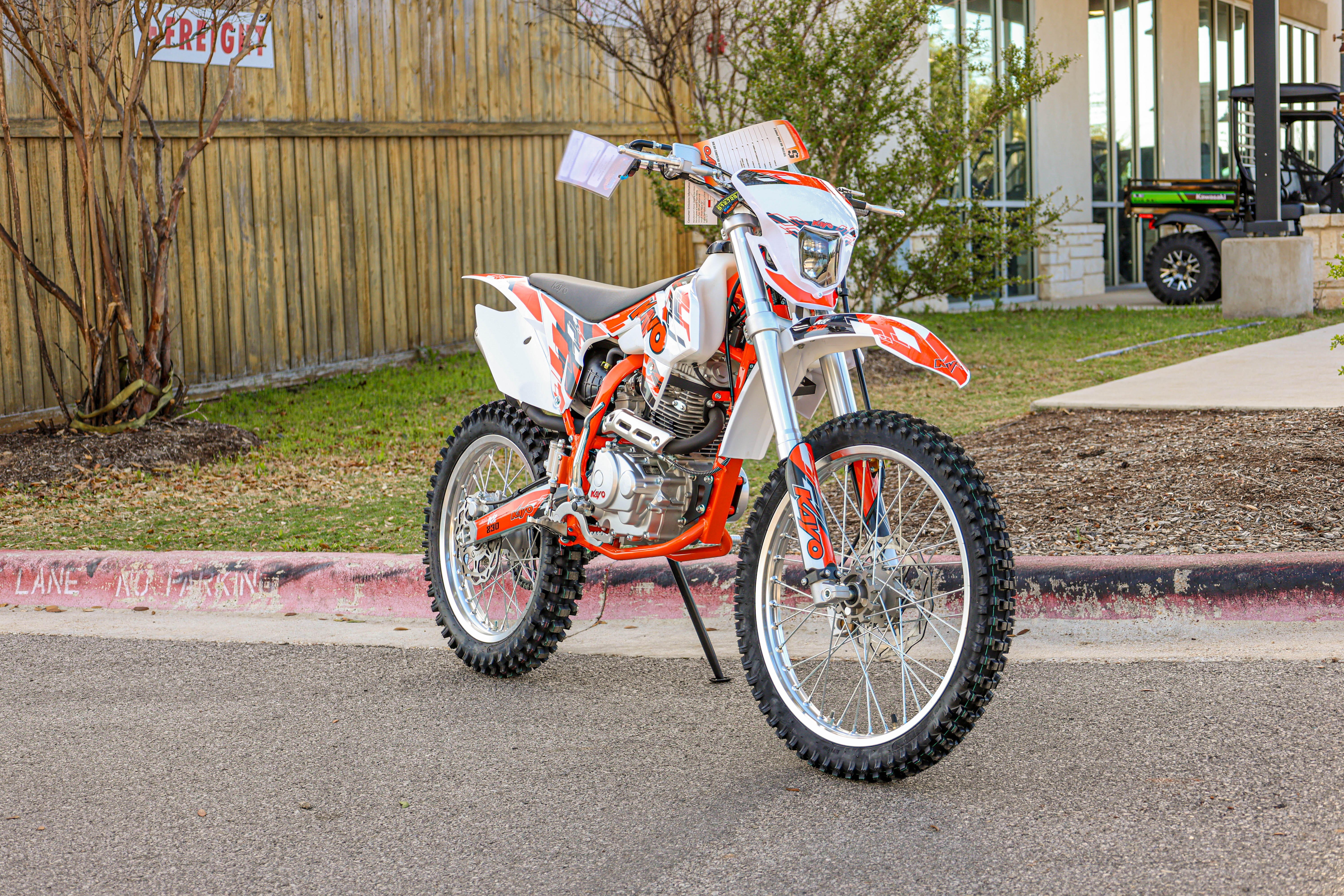This could be the best entry level dirt bike ever made! We started with a reliable, air cooled 4-stroke engine that delivers smooth and very usable power. Mated to a 5-speed transmission that lets you take advantage of the wide torque range this bike offers. Suspension tuned to the sturdy frame yields a dirt bike that is ready to hit the trails.